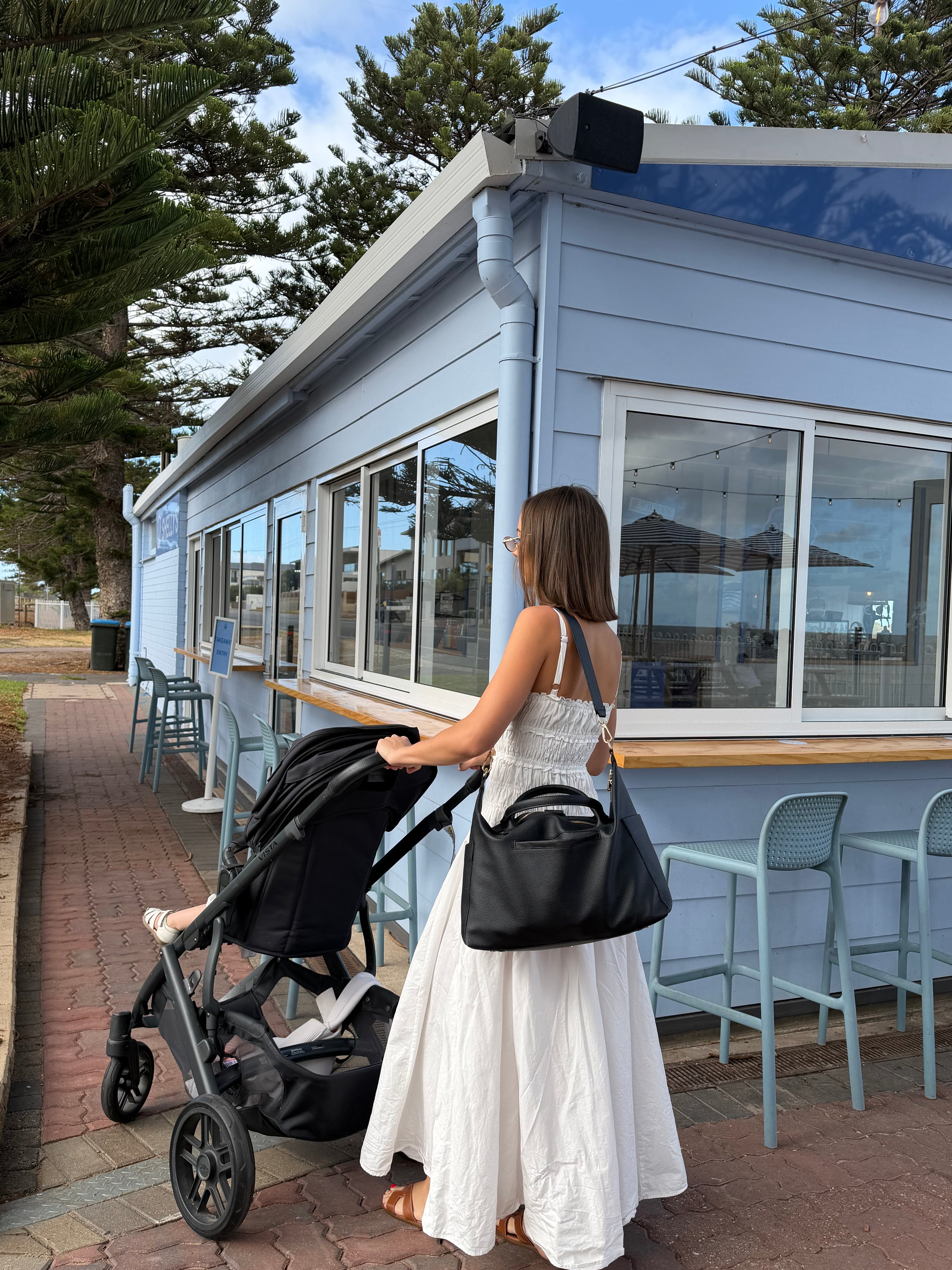 Crafted from premium vegan leather with a water-resistant lining and finished with light gold hardware, it’s practical, polished and built for the beautiful chaos of motherhood.